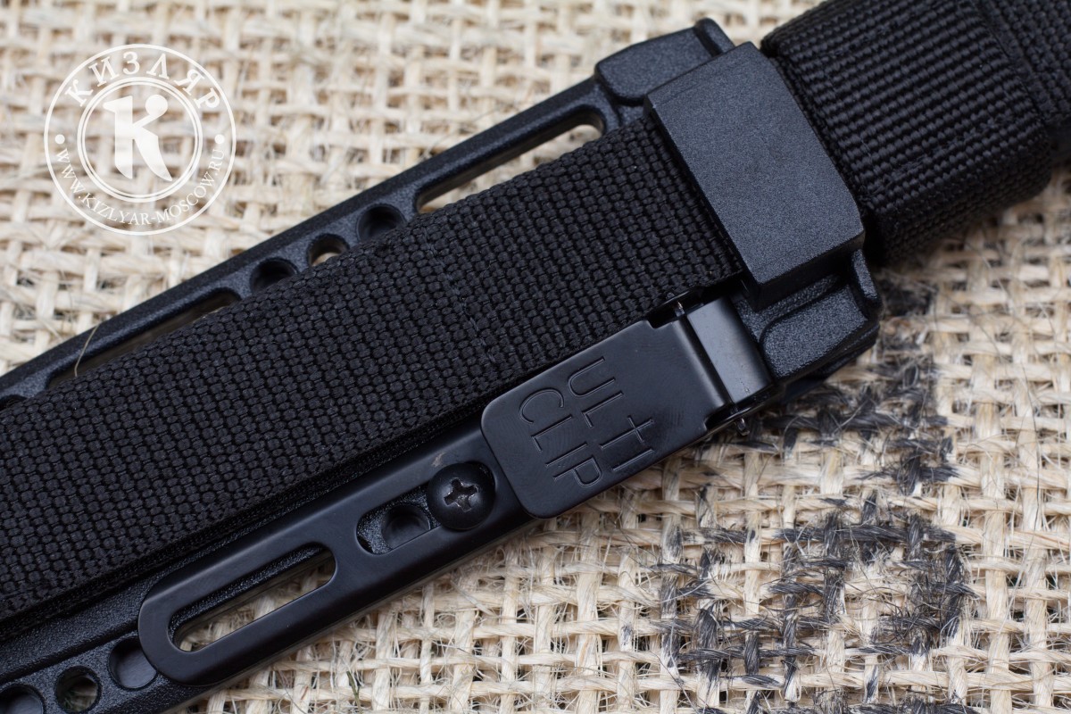 Крепление Ulti Clip позволяет подобрать удобный и комфортный подвес для любого чехла оснащенного крепежными отверстиями. Клипса имеет монтажную зону с двумя прорезями, обеспечивающую расстояние между отверстиями 38 мм., что делает его идеальным для ножен или других областей применения узкого оборудования.