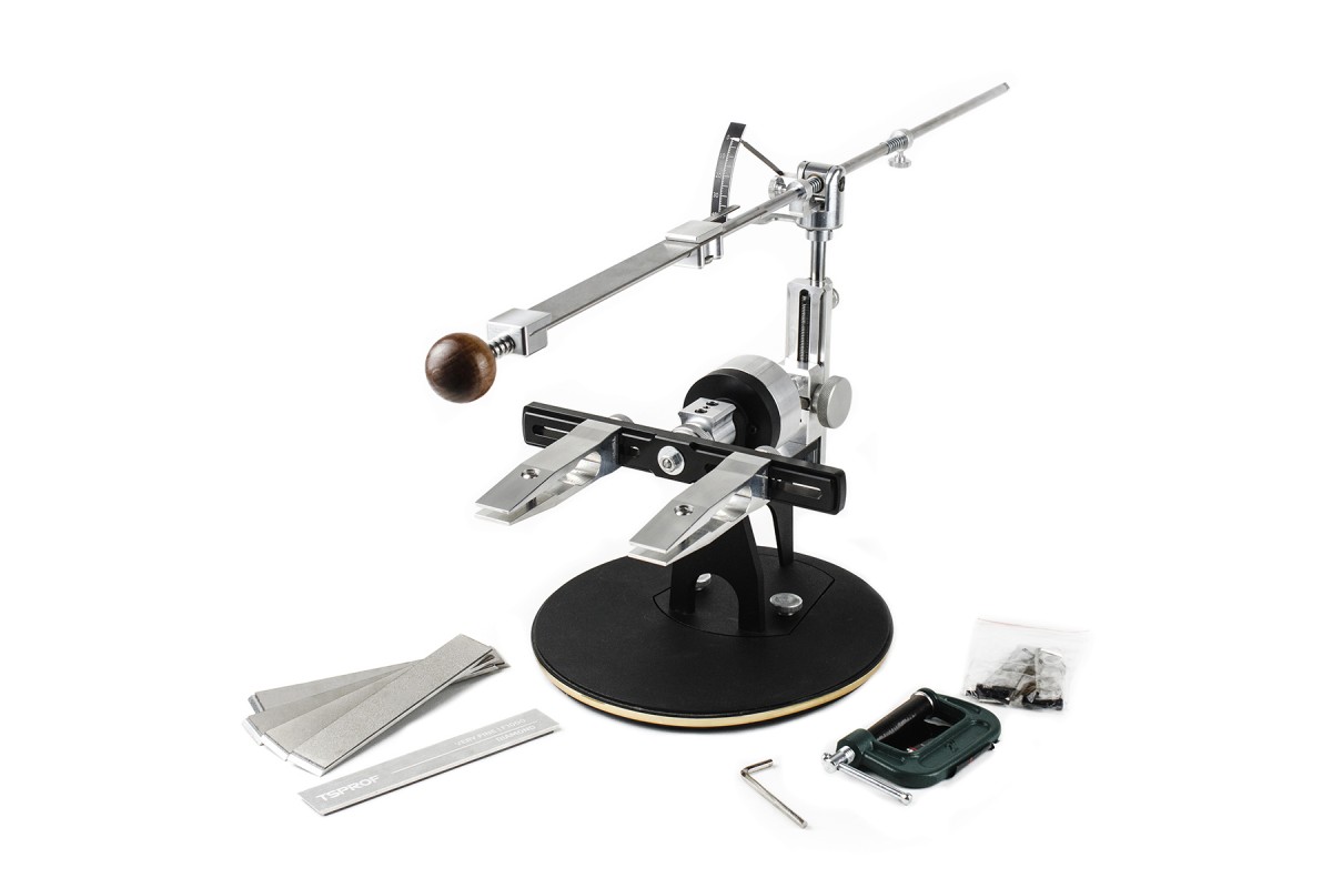 Набор для заточки Профиль К03 Hunter — комплект с необходимым минимумом для профессиональной заточки. Помимо заточного устройства TSPROF Профиль К03 в комплекте есть 5 алмазных пластин для заточки, стальная подставка весом 3,3 кг, а поставляется всё в фирменном деревянном боксе с ложементами, гарантирующим надежную доставку. Это лучший выбор для тех, кому нужен готовый комплект для заточки сразу. Комплект для заточки большинства типов ножей, в том числе охотничьих и кухонных. Уникальная конструкция зажимов подстраивается под форму лезвия.