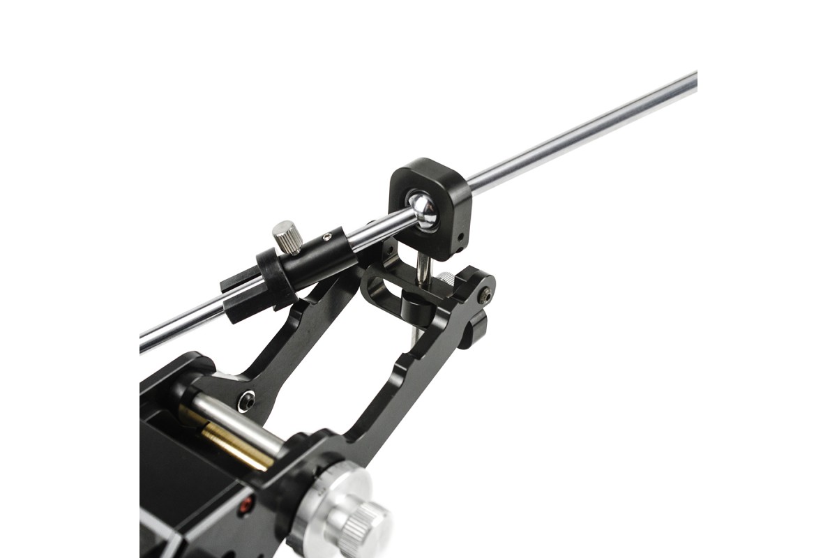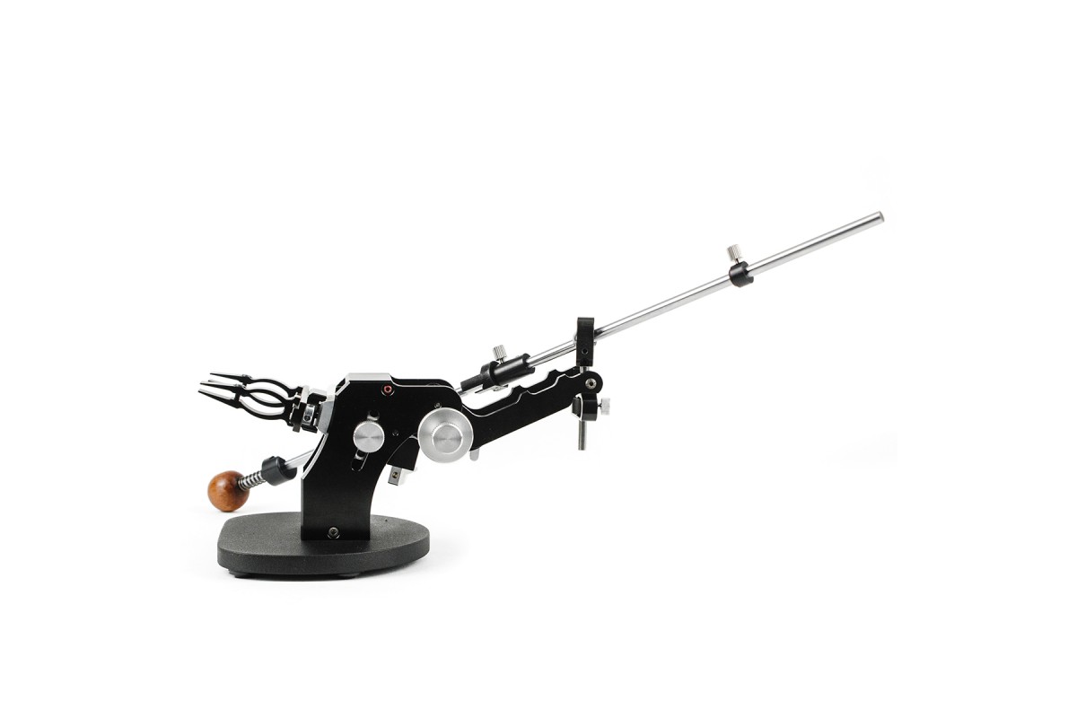 Штанга держателя абразива выполнена из стали, а упоры держателя, соединительная муфта и ограничитель из алюминия с анодированием черного цвета. Штанга позволяет фиксировать абразивы на бланках, длиной до 150 мм.