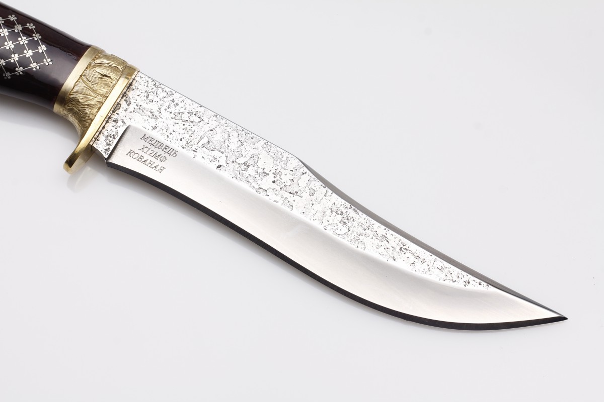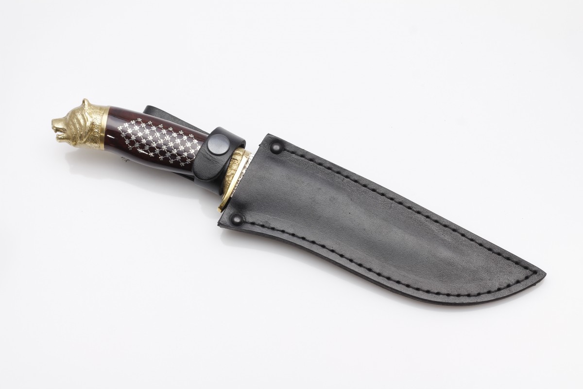 Рукоять ножа Медведь дополнена насечкой металлом (унцукульская насечка). Данный вид ремесла является традиционным для Республики Дагестан и насчитывает многовековую историю. Такая работа выполняется исключительно вручную, что придает изделию дополнительную ценность и значимость. Мы стараемся воплотить в наших издеиях исключительно лучшие традиции мастеров, прославивиших Дагестан на весь мир.