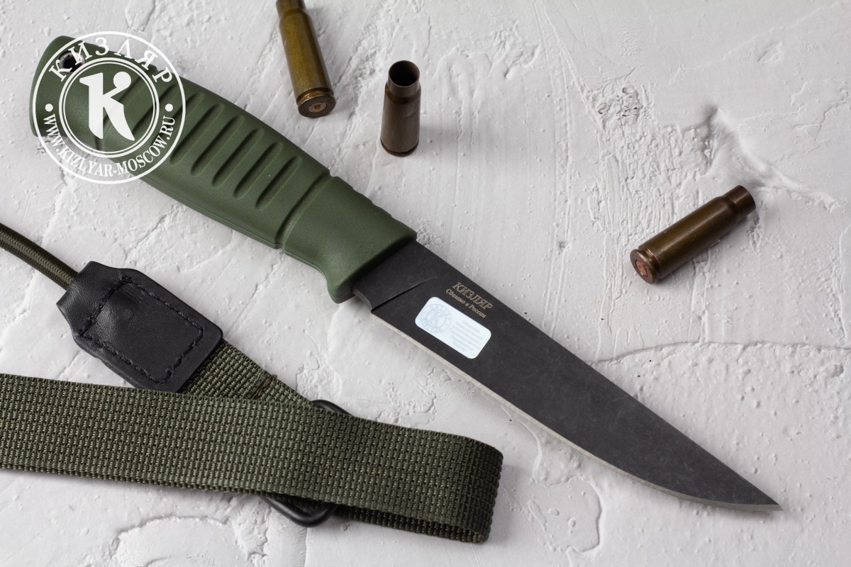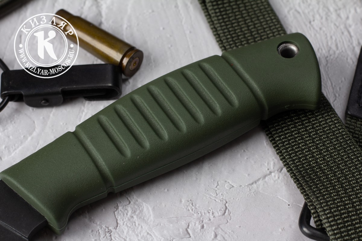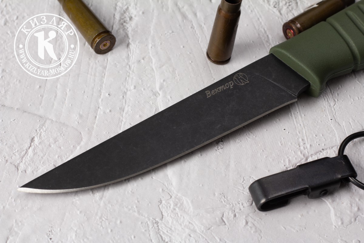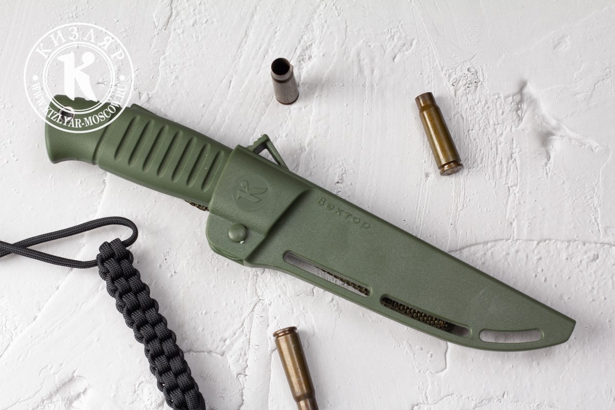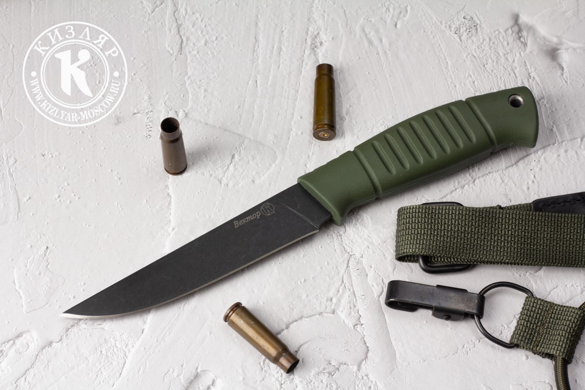 Нож Вектор в цвете олива по праву можно назвать универсальным ножом, который воплотил в себе характеристики разделочного, туристического и кухонного ножа.