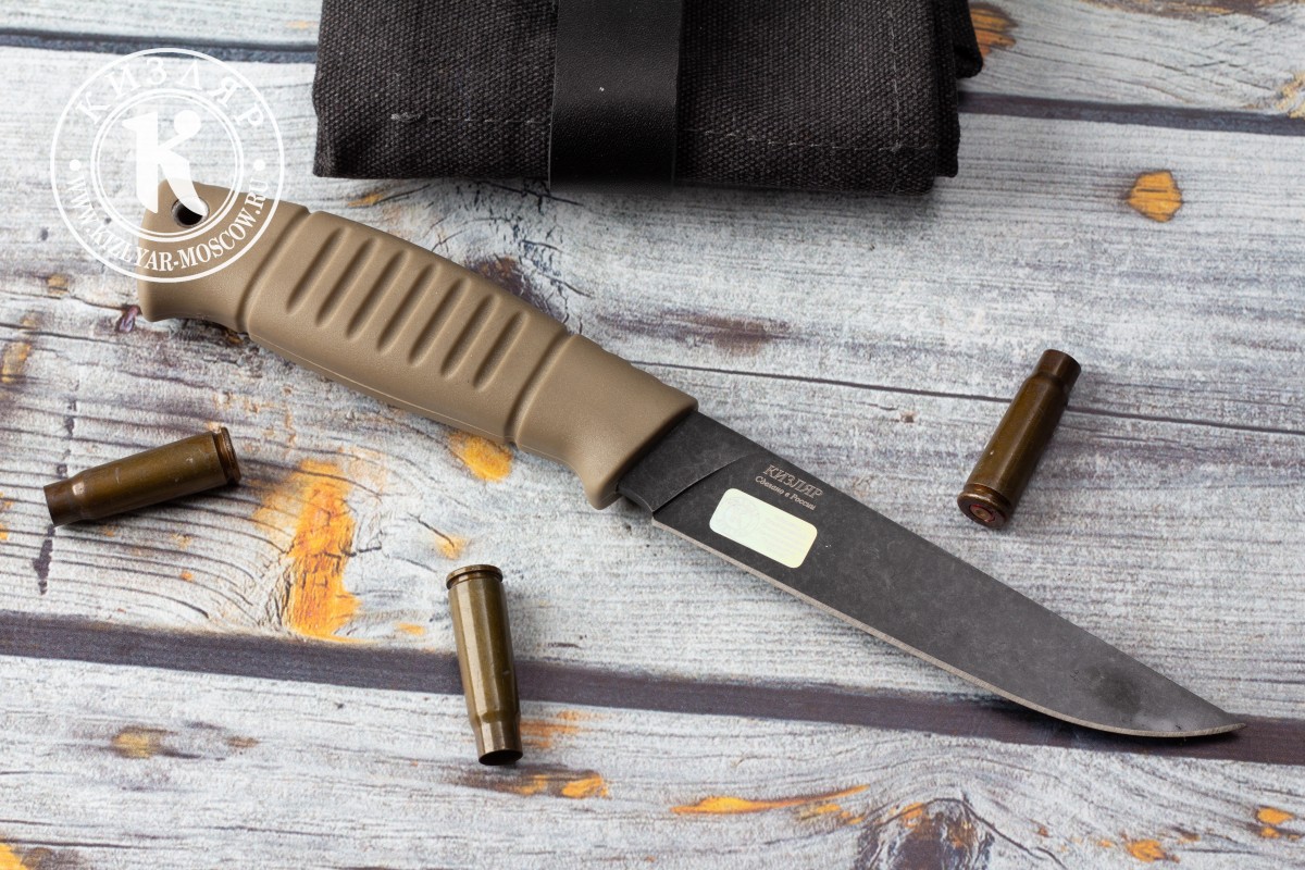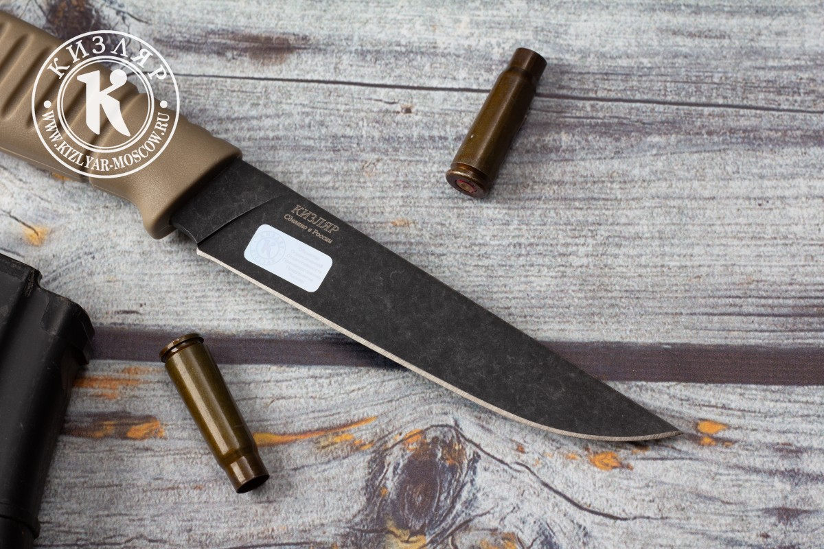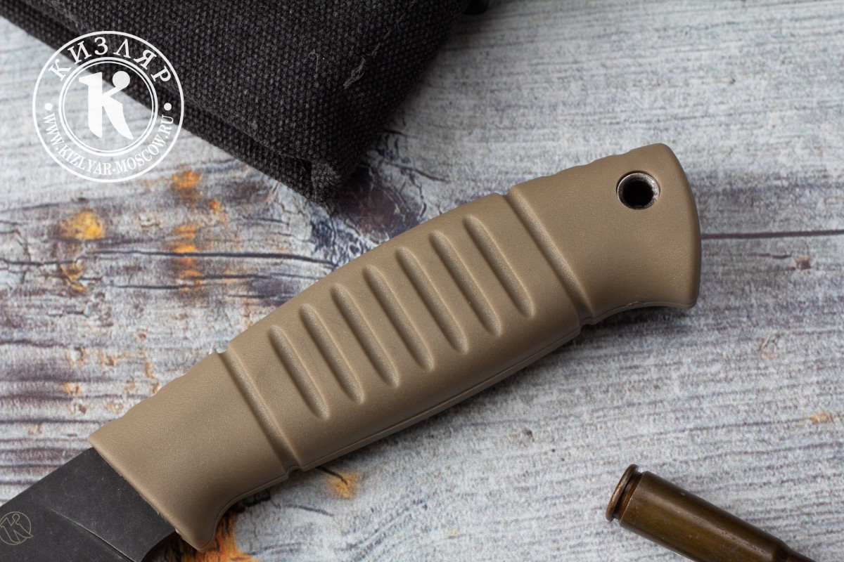 Рукоять выполнена методом напрессовки по всей длине хвостовика до темлячного отверстия. Фактурная рукоять из эластрона будет уверенно удерживаться даже мокрой или грязной рукой.