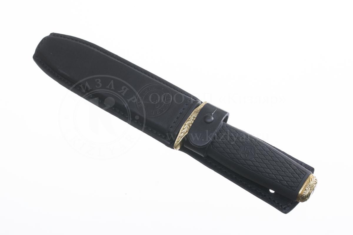 Пограничник это надежный нож кинжального типа, выполненный по мотивам советских ножей военного времени. Клинок ножа выполнен из стали устойчивой к коррозии и закален до 57-59 HRC. Клинок оснащен фрезерованными долами для снижения веса и увеличения прочности. Рукоять выполнена из эластрона и оснащена гардой и задником из латуни. Латунные элементы декорированы рифлением. Тип монтажа –сквозной. Сплошной хвостовик проходит насквозь через рукоять. Нож может выступить в качестве подарка, а может быть использован в повседневной жизни для решения широкого круга задач. Ножны из натуральной кожи обеспечат удобную переноску и хранение. Ножны устроены таким образом, что нож легко можно достать одной рукой.