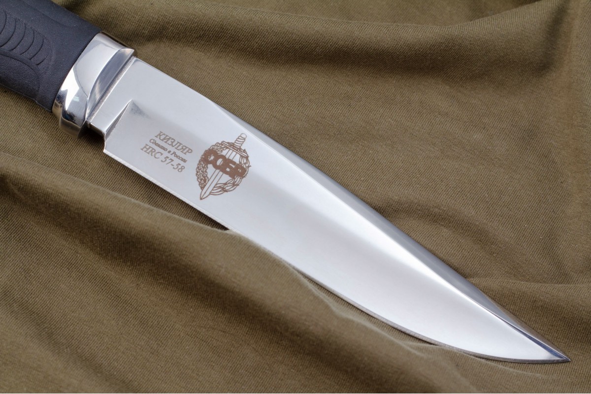 Изображенние наносится на клинок методом лазерной гравировки. Такая технололгия исключет любое термическое воздействие на металл и не нарушает закалку ножа.