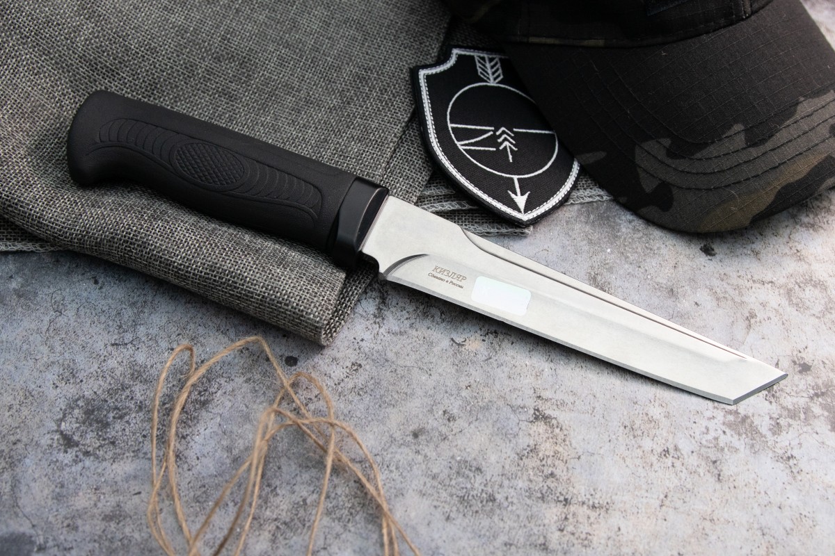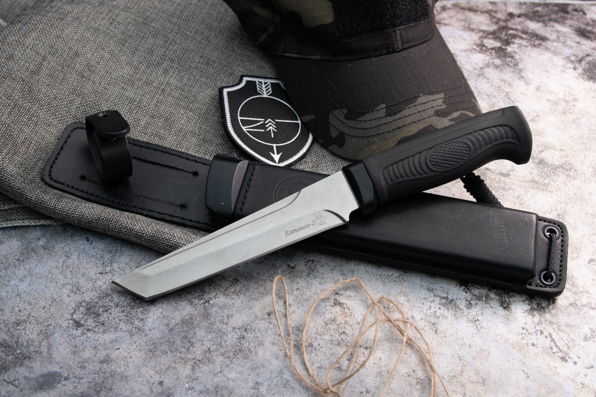 Нож охотничий "Катанга-2" является продолжением "речной" серии ножей. Нож имеет броский дизайн в стиле танто и понравится не только ценителям восточной культуры, но и всем тем, кто любит стильные мужские игрушки. Нож имеет усиленную конструкцию по центру клинка, что позволяет использовать его для тяжелых работ в полевых условиях. Рукоять традиционно для данной серии ножей выполнена из материала Elastron. Практичный и неприхотливый, он будет цепко держаться в Ваших руках и не даст ножу выскользнуть из руки в самый ответственный момент. *Также существует модификация ножа под названием "Катанга" которая относится к холодному оружию