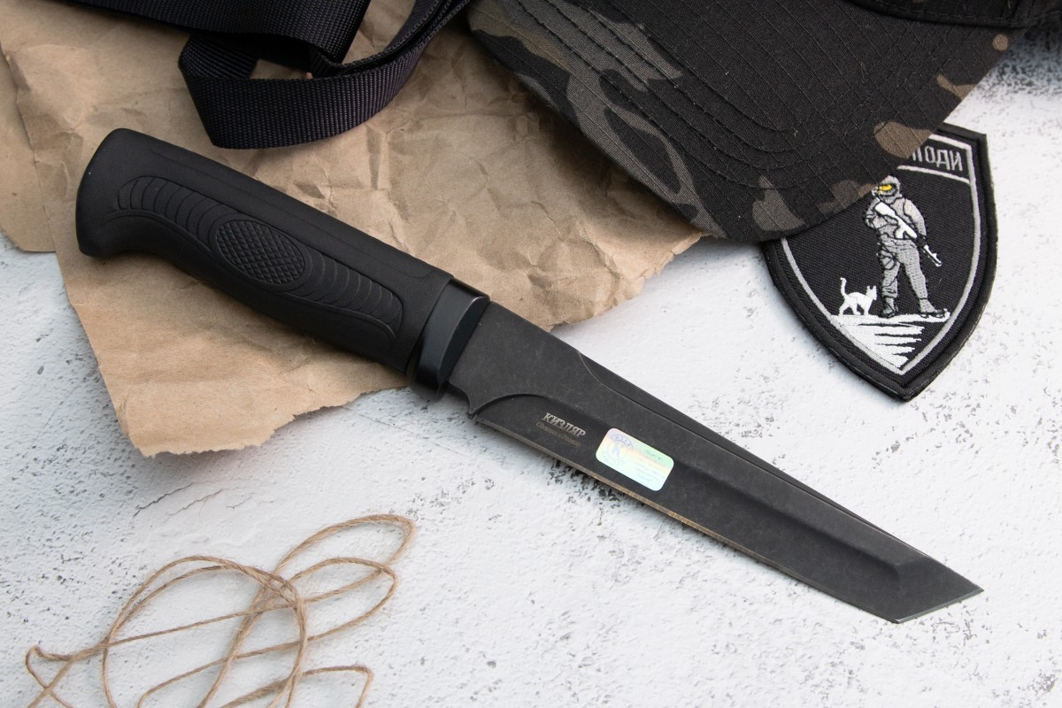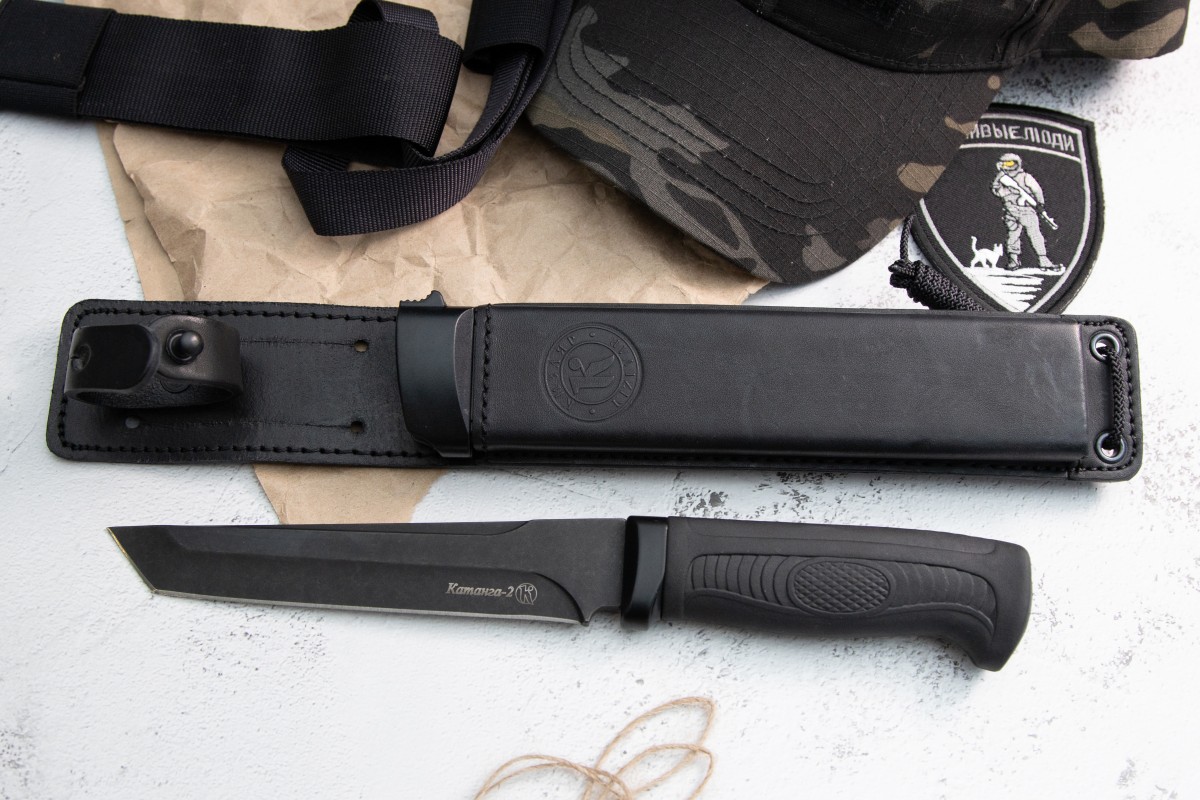 Нож охотничий "Катанга-2" является продолжением "речной" серии ножей. Нож имеет броский дизайн в стиле танто и понравится не только ценителям восточной культуры, но и всем тем, кто любит стильные мужские игрушки. Нож имеет усиленную конструкцию по центру клинка, что позволяет использовать его для тяжелых работ в полевых условиях. Рукоять традиционно для данной серии ножей выполнена из материала Elastron. Практичный и неприхотливый, он будет цепко держаться в Ваших руках и не даст ножу выскользнуть из руки в самый ответственный момент. *Также существует модификация ножа под названием "Катанга" которая относится к холодному оружию