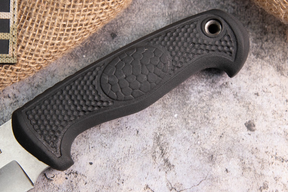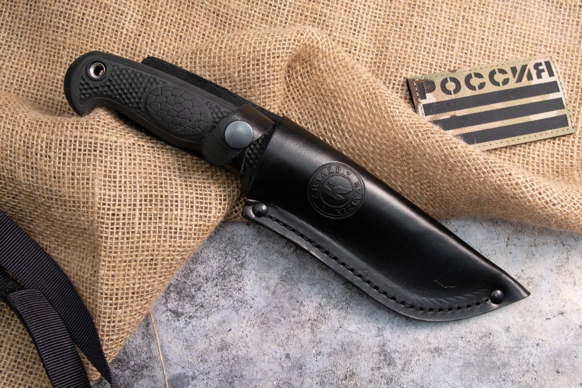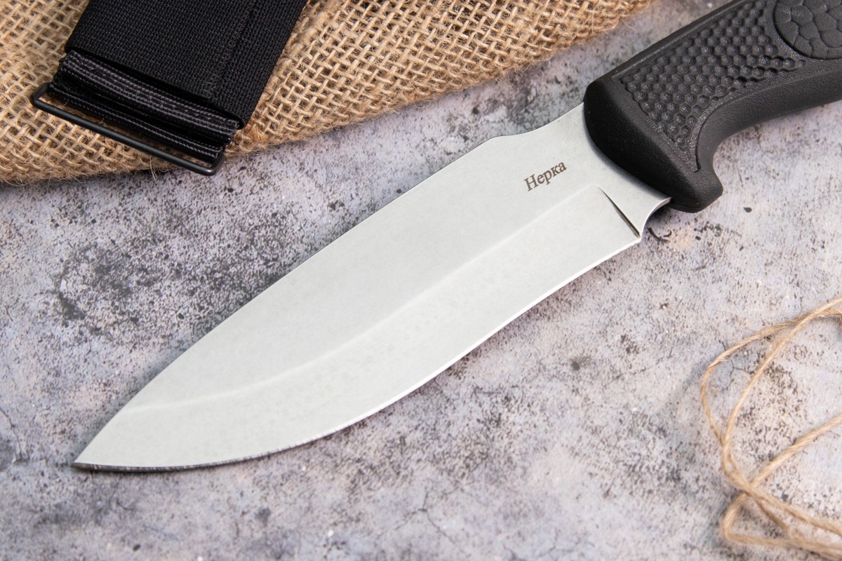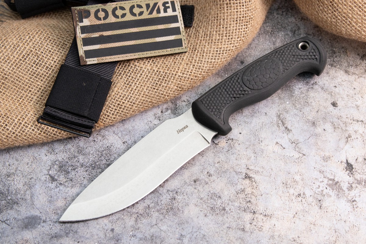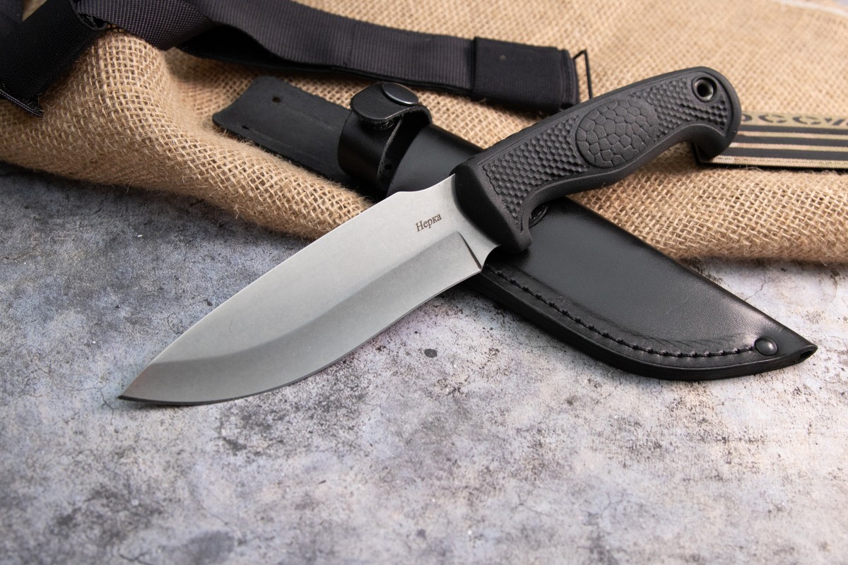 Нож Нерка представляет собой вариант максимально функционального ножа на все случаи жизни. Материалы из которых он выполнен позволяют использовать его в любых погодных условиях и климатических зонах. Ножом можно разделать добычу, выпотрошить и почистить рыбу, наколоть щепы на костер и произвести другие работы по обустройству лагеря. Клинок из стали AUS-8 совершенно не подвержен коррозии и закален до 57-59 HRC. Рукоять из обрезиненного материала с цепкими насечками плотно сидит даже в мокрой руке, что пригодится рыболовам и туристам. Ножны из натуральной кожи надежно фиксируют нож и в тоже время позволяют при необходимости достать нож одной рукой. Отличная модель для тех, кто ищет универсальный нож на все случаи жизни.