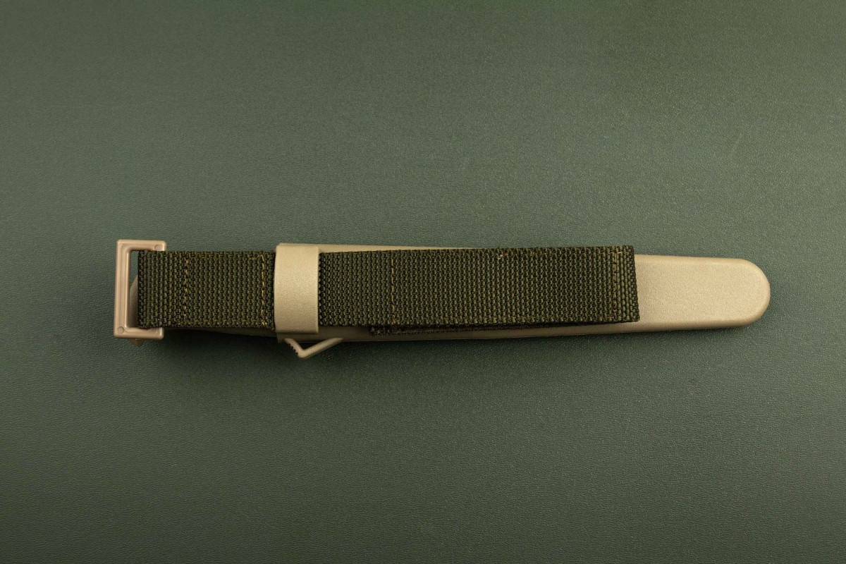 Нож поставляется с ножнами из ударопрочного пластика. Что обеспечивает дополнительную защиту клинка, безопасное хранение и его транспортировку.