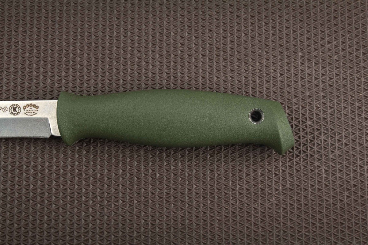 Рукоять выполнена из эластрона, прочного и эргономичного материала. Эластрон обеспечивает надежный захват и комфорт при работе с ножом, предотвращая скольжение во время использования. Благодаря своей прочности и стойкости к воздействию влаги, рукоять из эластрона идеально подходит для использования в кухне или в условиях активного отдыха на природе.