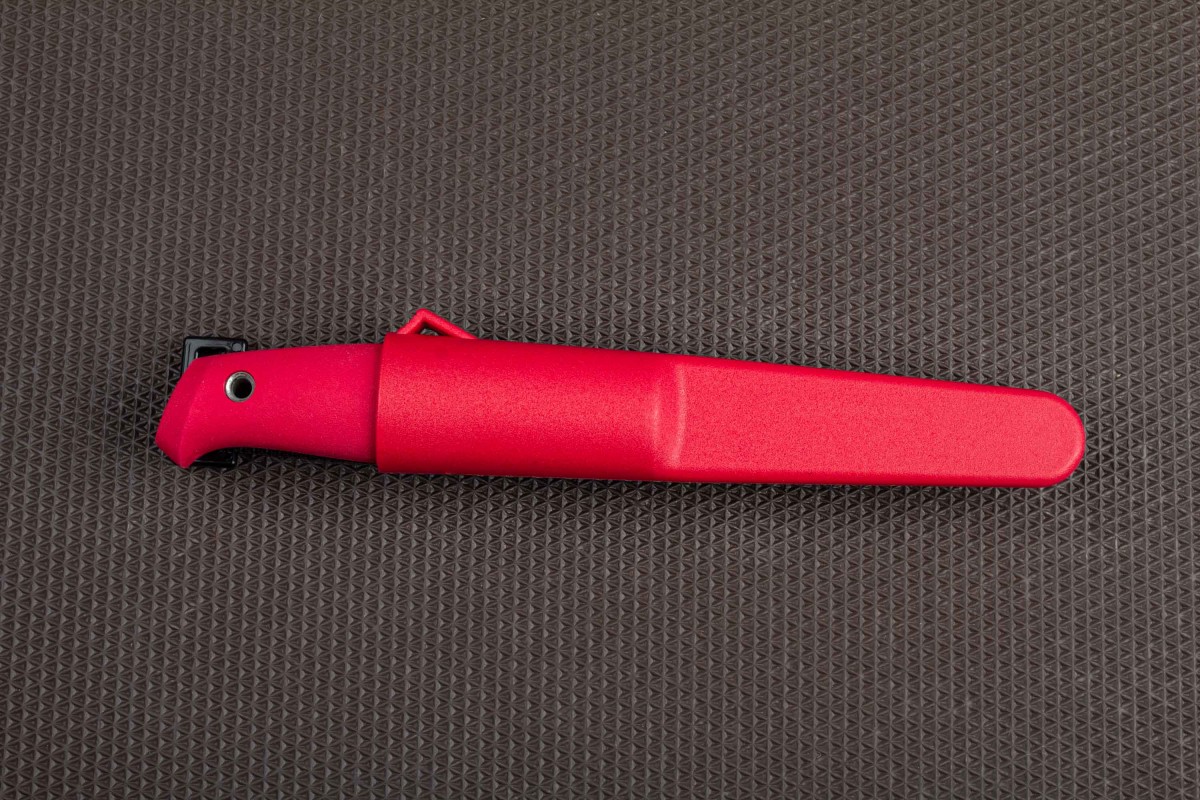 Нож поставляется с ножнами из ударопрочного пластика. Что обеспечивает дополнительную защиту клинка, безопасное хранение и его транспортировку.